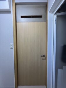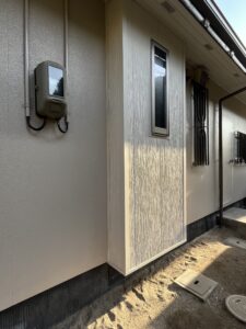 また、洗濯機スペースは配置を工夫し圧迫感を軽減。外部は保温性に優れた金属サイディングで仕上げ、機能性と耐久性にも配慮しました。開戸にはシオジ柾目を採用し、空間にやわらかな明るさと温かみをプラスしています。見た目だけでなく、お手入れのしやすさや耐久性にも配慮し、長く安心してお住まいいただける住まいに仕上げました。